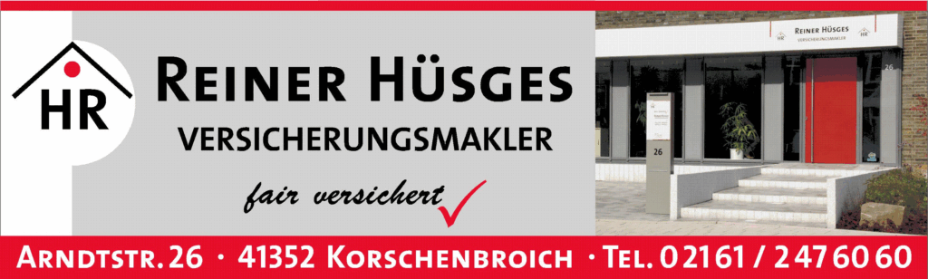 Fair versichert – Reiner Hüsges ist ein unabhängiger Versicherungsmakler in Korschenbroich. Das Unternehmen bietet persönliche Beratung und individuelle Lösungen in den Bereichen Personen-, Sach- und Gewerbeversicherungen. Ziel ist es, Kunden umfassend zu schützen und zuverlässig abzusichern.
